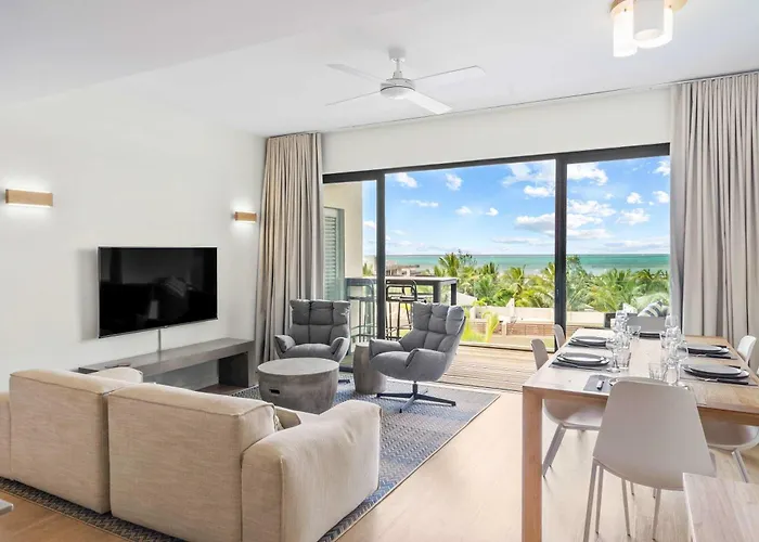 Azuri By Sealodge - Amazing Seaview Apartment Roches Noires, di 139 m², è situato a 15 minuti a piedi dalle Roche Noire Lava Tubes e offre una piscina all'aperto. L'appartamento dispone di un giardino privato e di un patio dove rilassarsi.